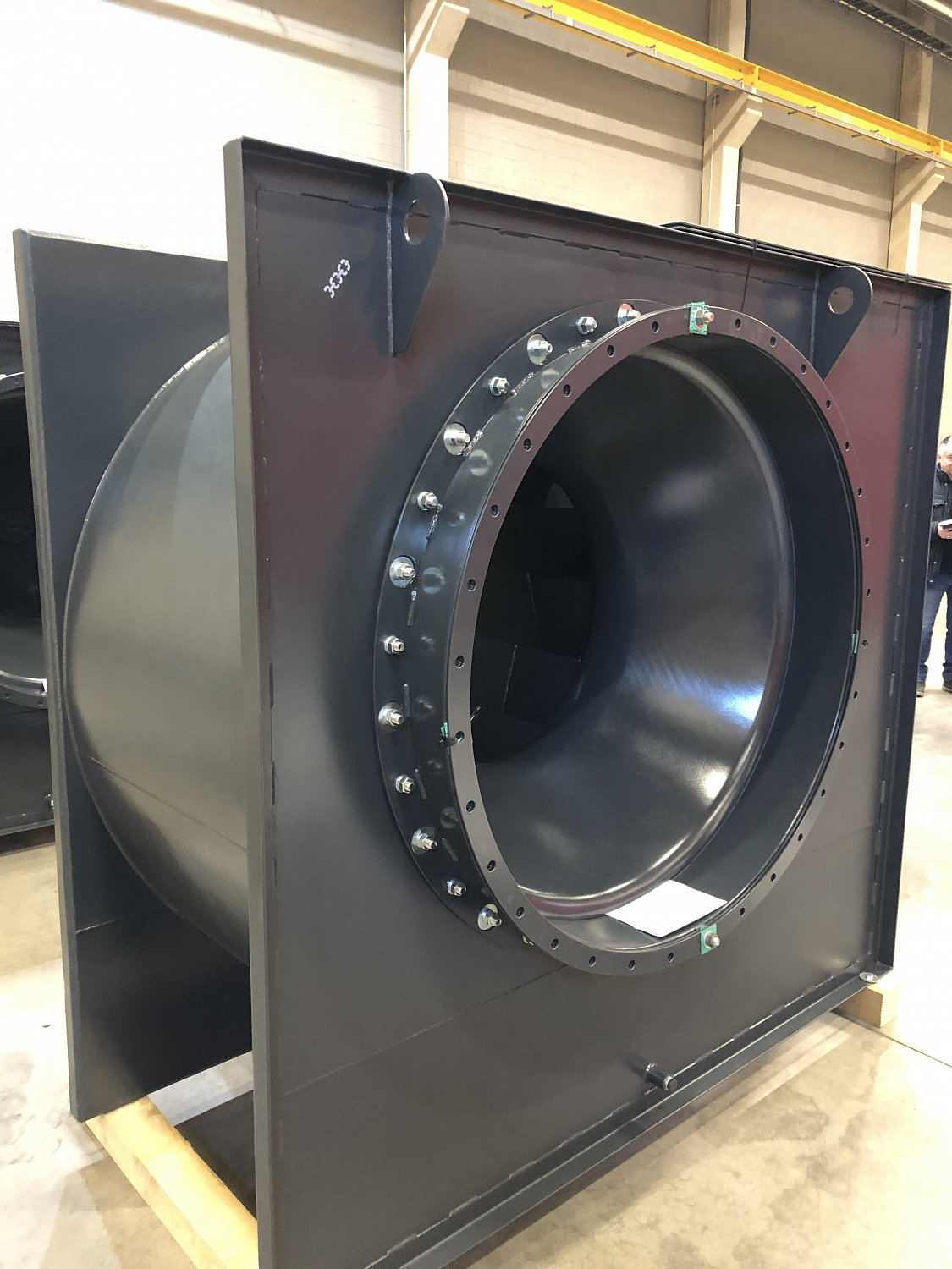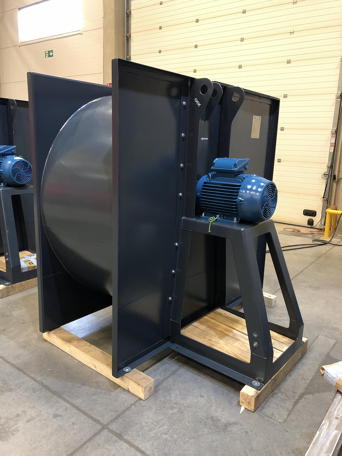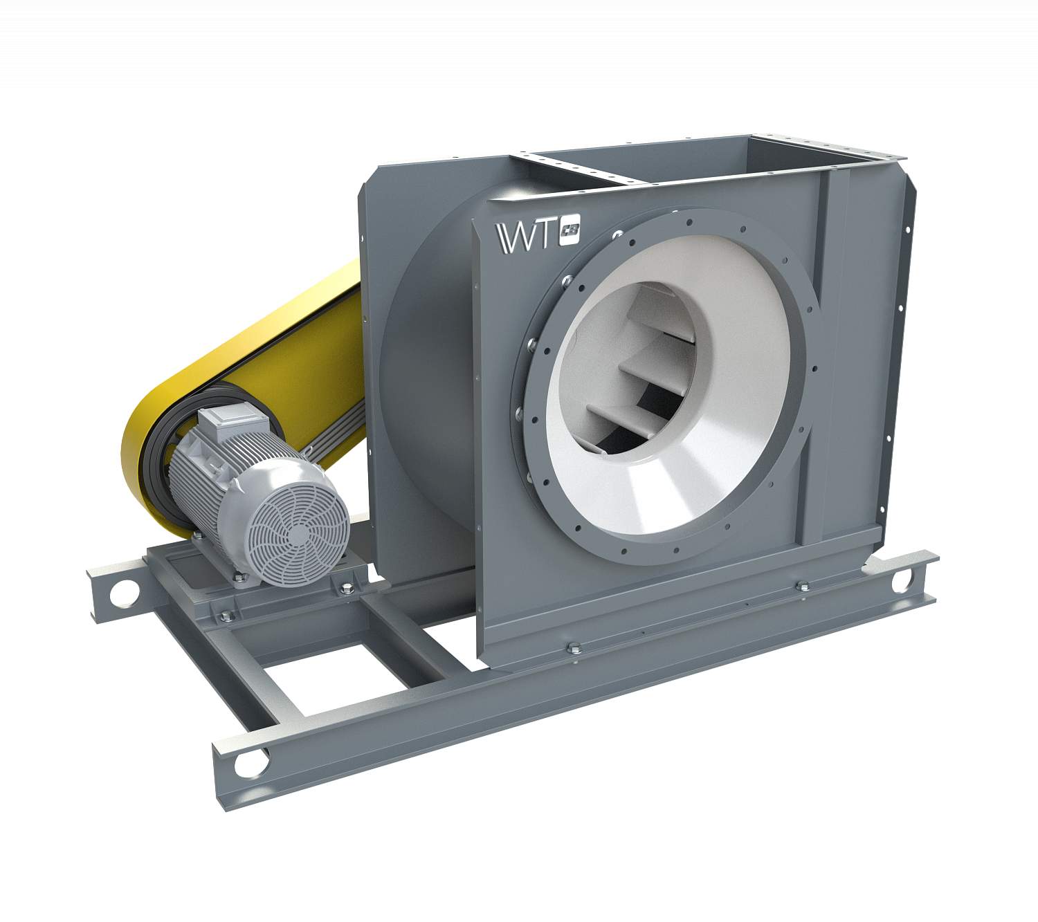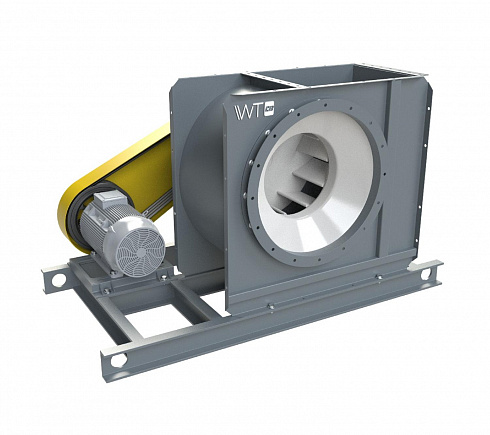 Model RB is a centrifugal single-sided fan in a square housing with backward-deflected blades. Model RB impeller blades provide high fan efficiency, allow moving corrosive and dusty gas-air flows.